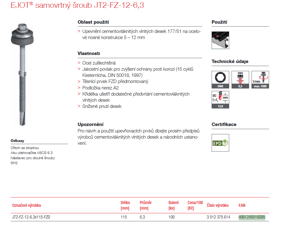 EJOT® samovrtný šroub JT2-FZ-12-6,3 - 6,3x115 - FZD