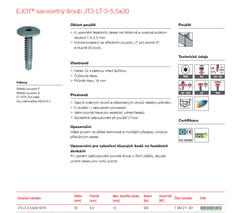 EJOT® samovrtný šroub JT3-LT-3-5.5 - 5,5x30 KD16