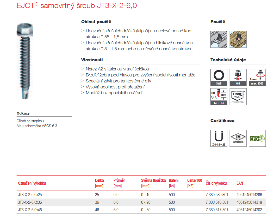 EJOT® samovrtný šroub JT3-X-2-6,0
