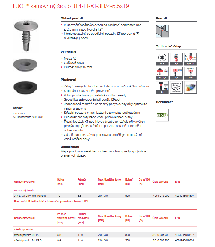 EJOT® samovrtný šroub nerez JT4-LT-XT-3H/4-5.5x19 KD16