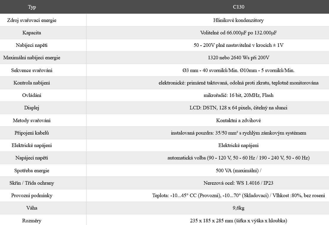 Přivařovací stroj kondenzátorový C130 + zdvihová pistole P05-S