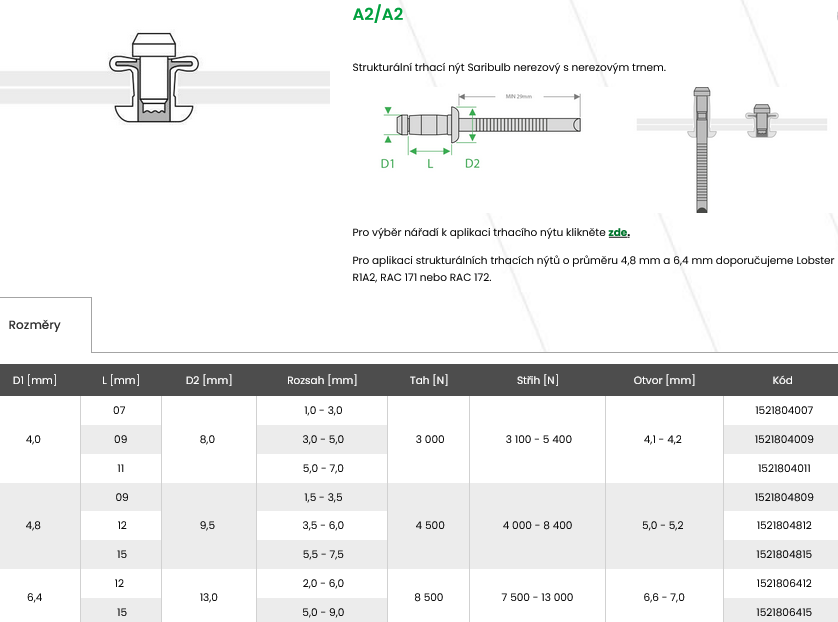 Trhací nýt A2/A2 6,4x15 SARIBULB