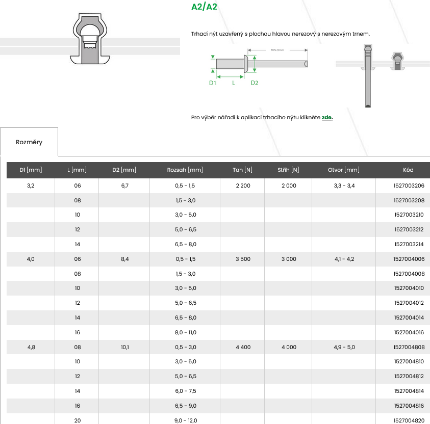 A2/A2 nerezový nýt, nerezový trn( nerez A2)
