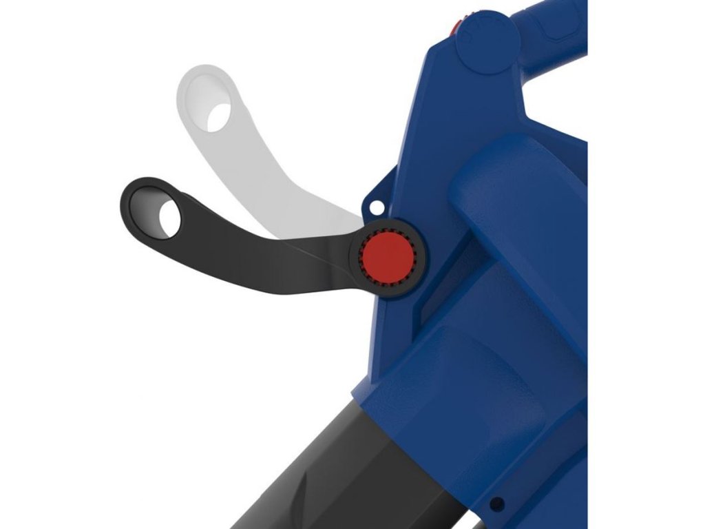 Akumulátorový vysavač, určený k odstranění drobného rostlinného odpadu ze zahradních trávníků i zpevněných ploch okolo domu.