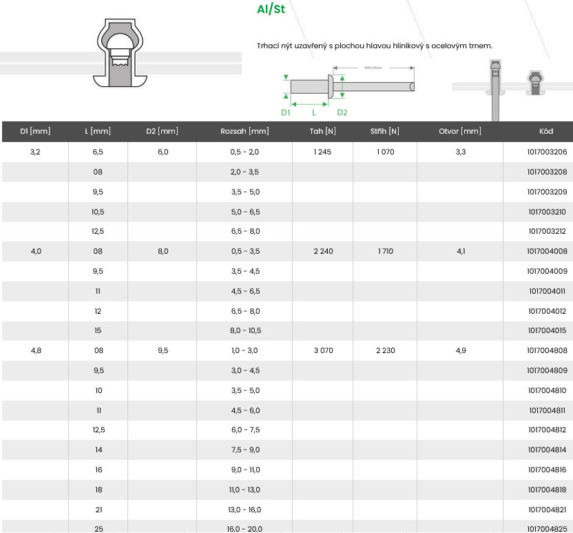 Trhací nýt SARIV Al/St 4,8x9,5 uzavřený