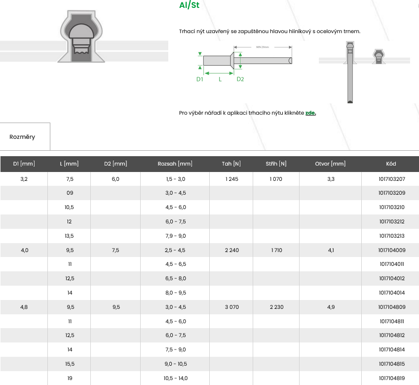 Al/St hliníkový nýt, ocelový trn