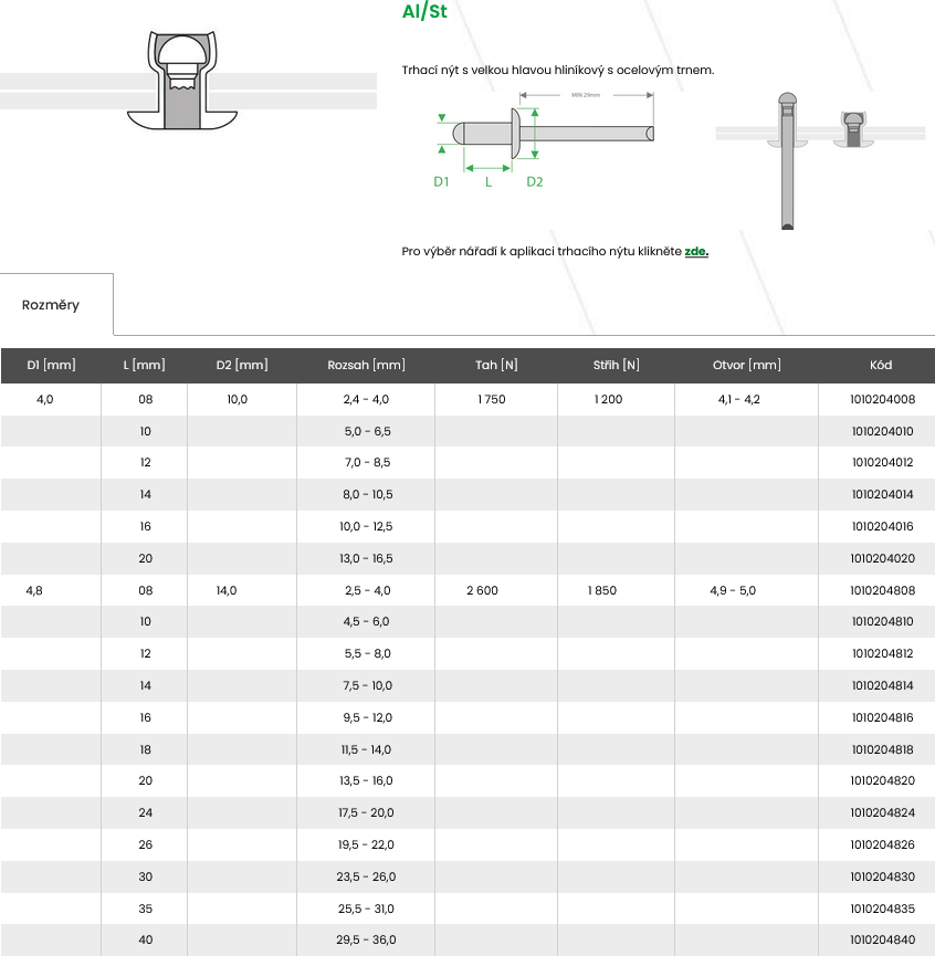 Trhací nýt SARIV Al/St 4,8x20x14 VH p