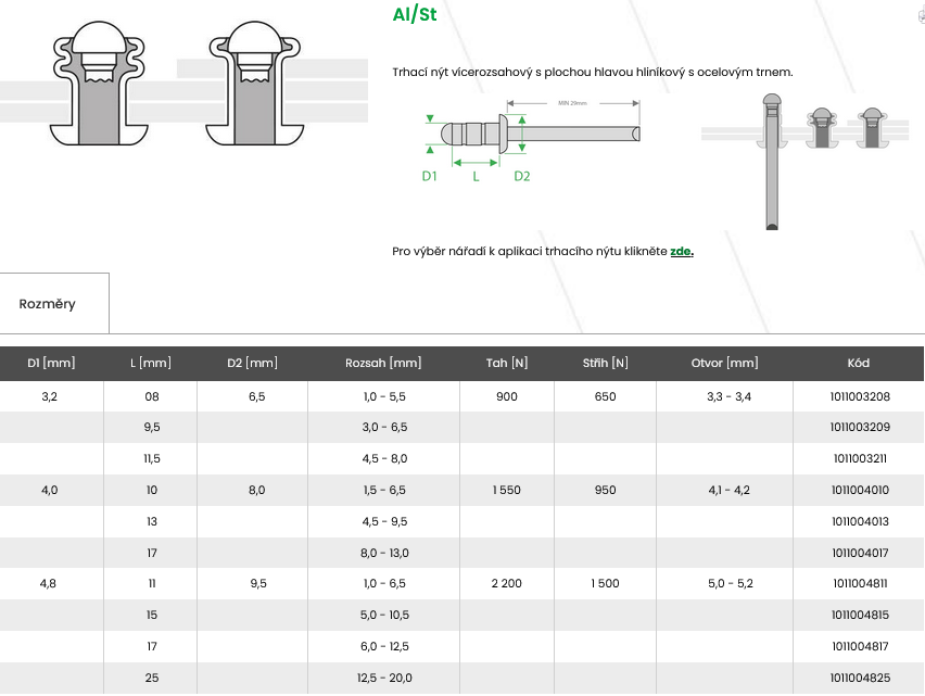Al/St hliníkový nýt, ocelový trn