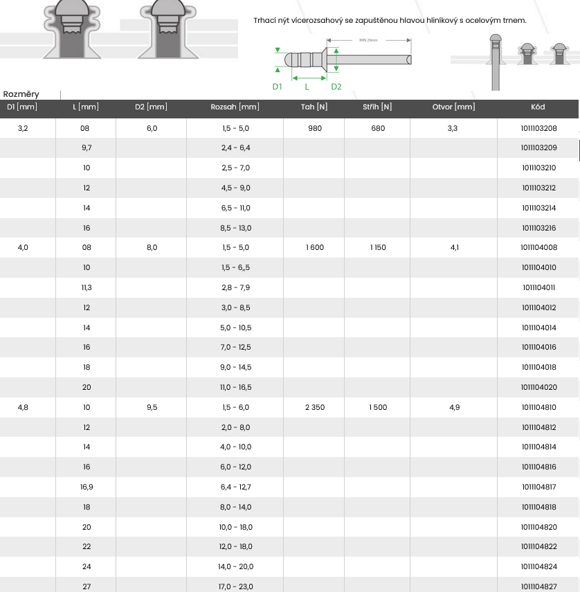 Trhací nýt Al/St 3,2x10 MULTI ZH