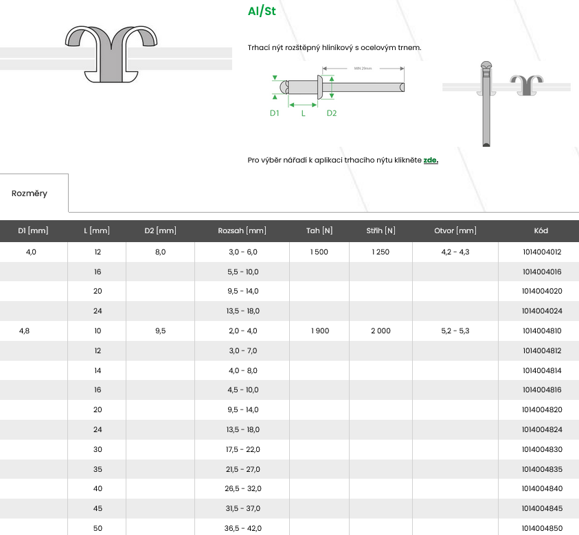 Trhací nýt Al/St 4,8x40 rozštěpný