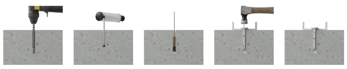 Ocelová stropní klínová kotva ETA Assessed. Kovová kotva klínového typu pro kotvení s kladivem.