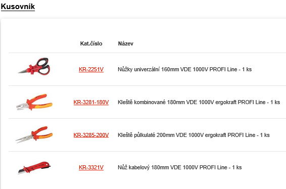 Sada kleští, nůžky, nůž ergokraft VDE 1000V 6ks COMPLETO PROFI Line