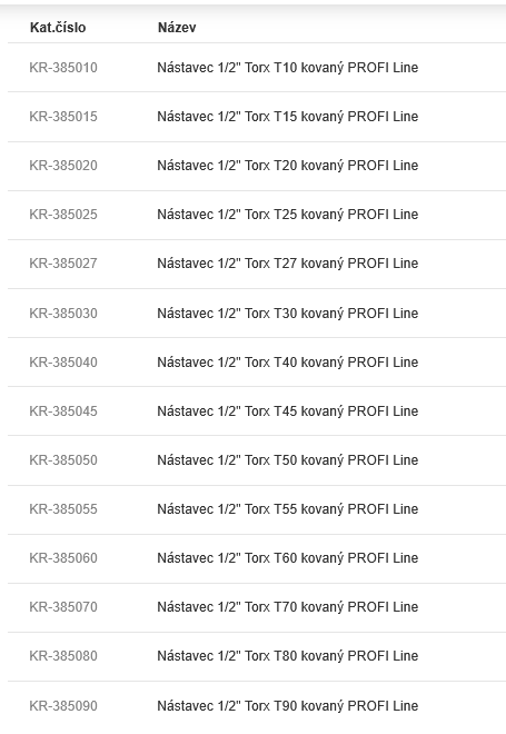 Sada nástavců 1/2" úderových Torx T10-T70 12ks PROFI Line