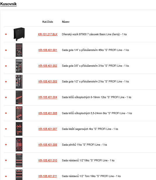 Dílenský vozík BT900 7 zásuvek + nářadí 16 modulů 241ks PROFI Line