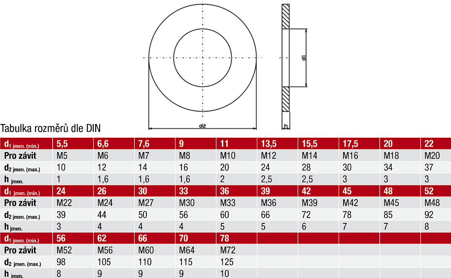 DIN 126 - Ploché podložky , Současná norma: DIN EN ISO 7091 , Ekvivalentní normy: ISO 7091 ; CSN 021721 ; PN 82005 ; UNI 6593