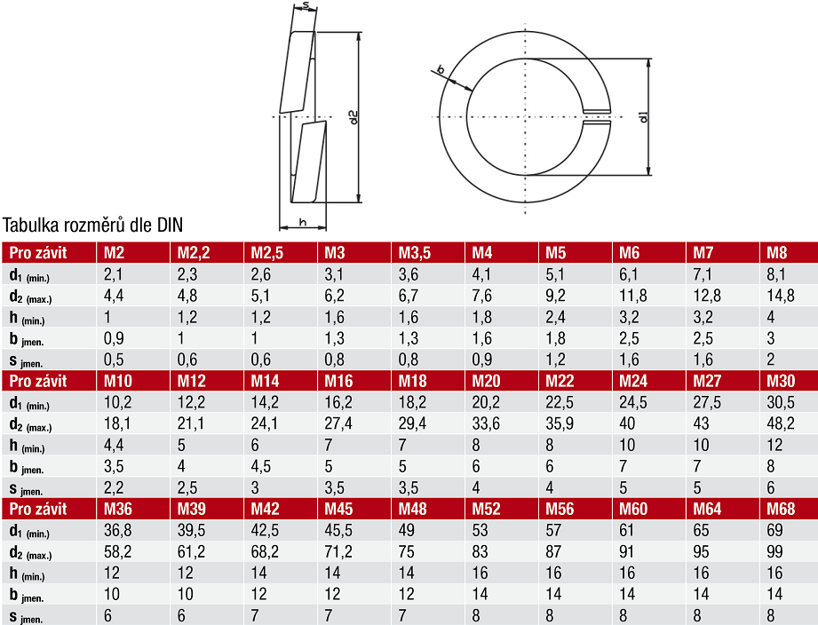 DIN 127B Podložka pružná s obdélníkovým průřezem, forma B (pro šestihranný šroub) nerez A4