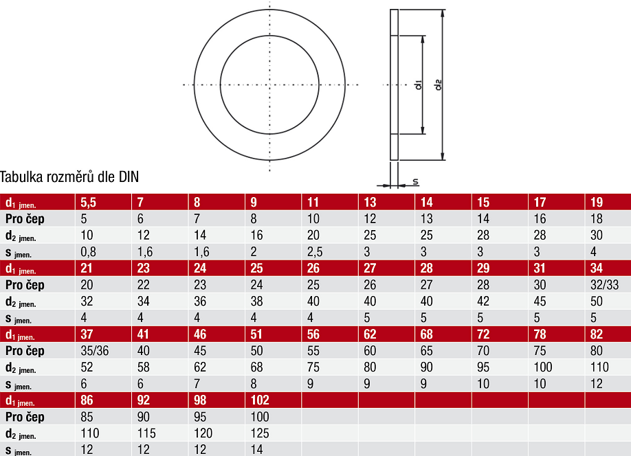 DIN 1441 - Podložky pro otočné čepy , Současná norma: DIN 1441 , Ekvivalentní normy: ISO 8738 ; CSN 021706 ; EU 28738