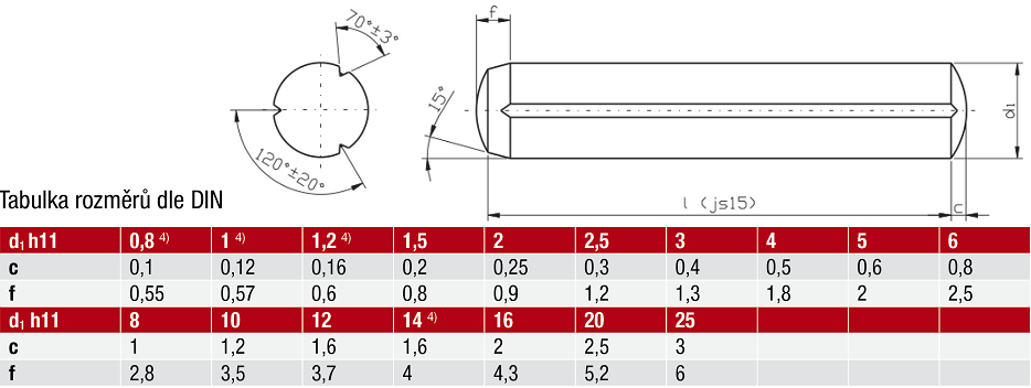 DIN 1473 - Válcové rýhované kolíky , Současná norma: DIN EN 28740 , Ekvivalentní normy: ISO 8740 ; CSN 022173 ; EU 28740