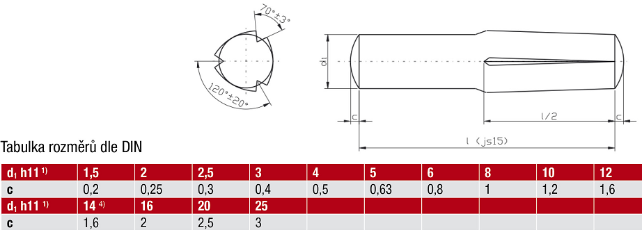 DIN 1474 - Zástrčné rýhované kolíky , Současná norma: DIN EN 18741 , Ekvivalentní normy: ISO 8741 ; CSN 022174 ; PN 85026
