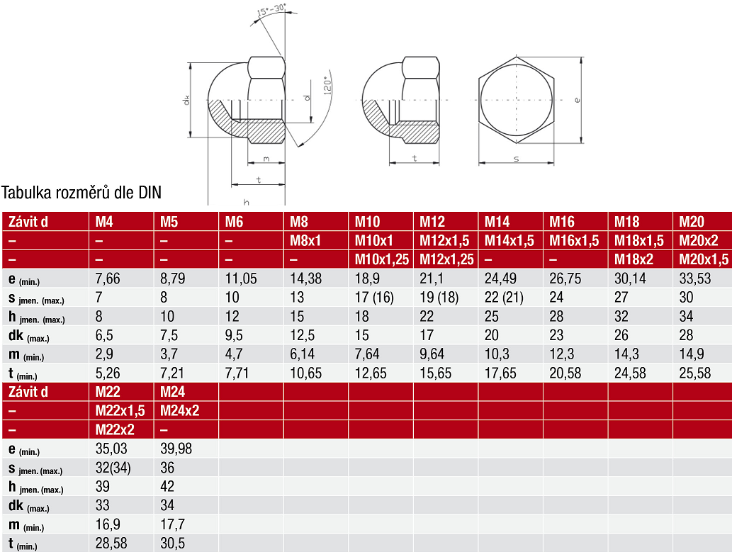 DIN 1587 - Šestihranné klenuté kloboučkové matice, Současná norma: DIN 1587, Ekvivalentní normy: PN 82181; UNI 5721