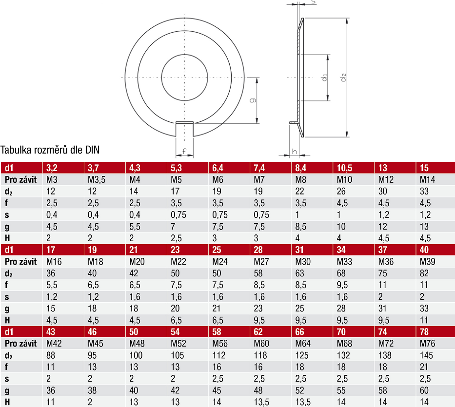 DIN 432 - Podložky s nosem , Ekvivalentní normy: CSN 021753 ; PN 82011 ; UNI 6599