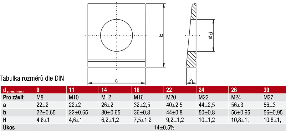DIN 435 - Podložky čtyřhranné pro I nostníky , Současná norma: DIN 435 , Ekvivalentní normy: CSN 021739 ; PN 82009 ; UNI 5717