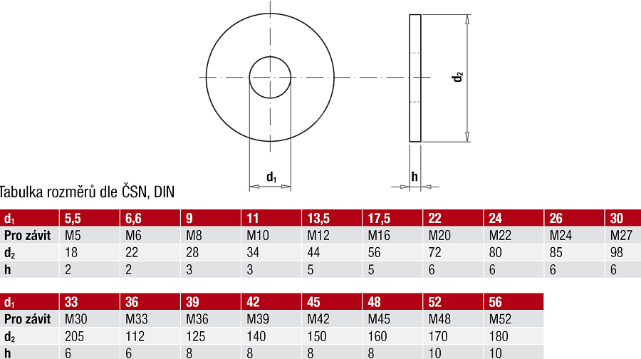 DIN 440 R - Podložky pro dřevěné konstrukce, Současná norma: DIN 440R , Ekvivalentní normy: ISO 7094 ; CSN 021727