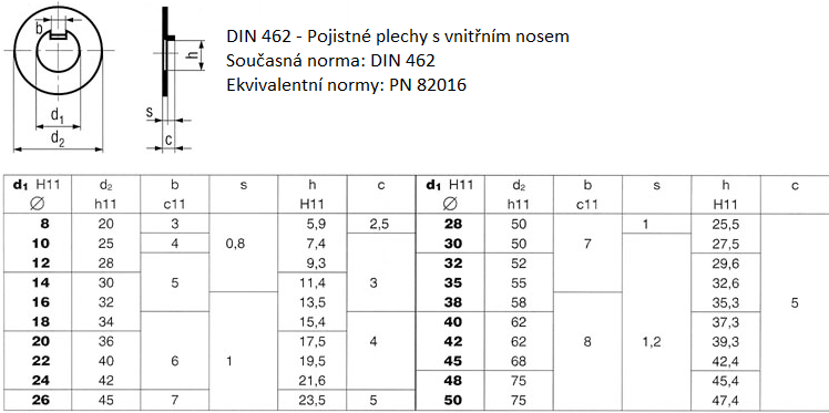 DIN 462 - Pojistné plechy s vnitřním nosem , Současná norma: DIN 462 , Ekvivalentní normy: PN 82016