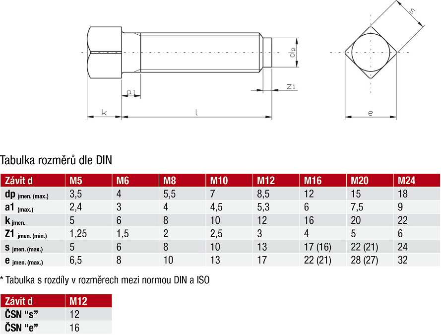 DIN 479 - Šrouby s krátkým čípkem, Současná norma: DIN 479, Ekvivalentní normy: CSN 021121; PN 82307