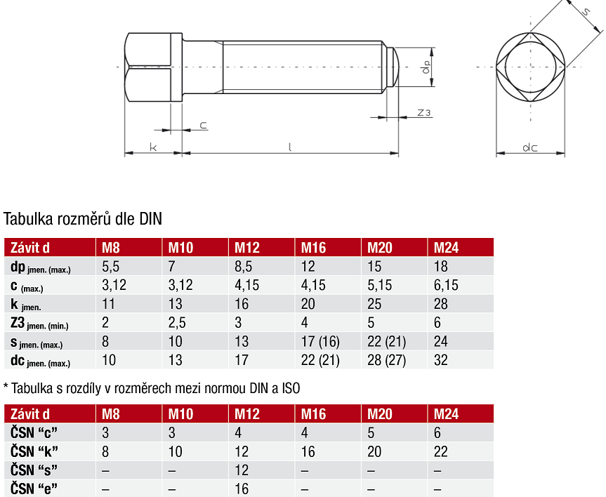 DIN 480 - Upínací šrouby s nákružkem a s čípkem, Současná norma: DIN 480, Ekvivalentní normy: CSN 021122; PN 82308