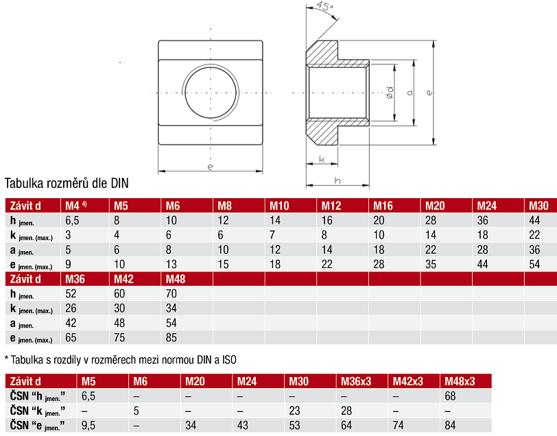DIN 508 - Matice pro T-drážky, Současná norma: DIN 508 , Ekvivalentní normy: ISO 299 ; CSN 021529 ; PN 61275
