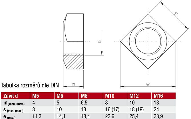 DIN 557 - Čtyřhranná matice, Současná norma: DIN 557, Ekvivalentní normy: CSN 021624 ; PN 82151 ; UNI 5597