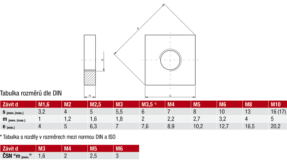 DIN 562 - Čtyřhranné nízké matice, Současná norma: DIN 562 , Ekvivalentní normy: PN 82151 ; UNI 5596