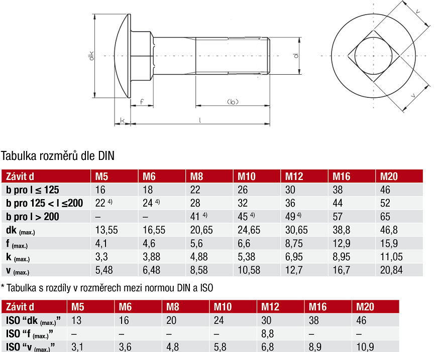 DIN 603 - Šrouby s půlkulatou hlavou a čtvercovým dříkem, Současná norma: DIN 603, Ekvivalentní: ISO 8677; CSN 021319; PN 82406; UNI 5731