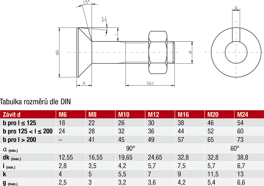 DIN 604 šroub zápustná hlava s nosem DIN604