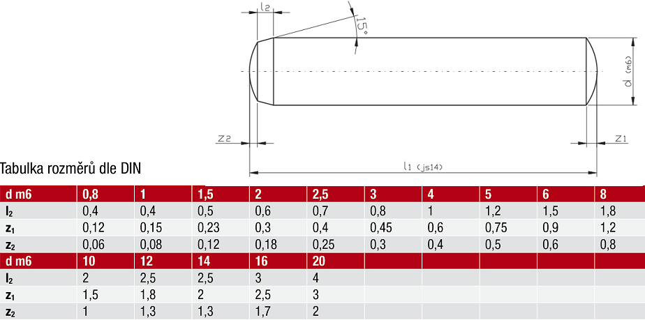 DIN 6325 - Rovnoběžné kolíky , Současná norma: DIN EN 28734 , Ekvivalentní normy: ISO 8734 ; CSN 022152 ; UNI 6364A
