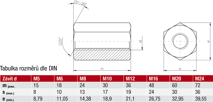 DIN 6334 - Prodlužovací matice 3D, Ekvivalentní normy: CSN 021604