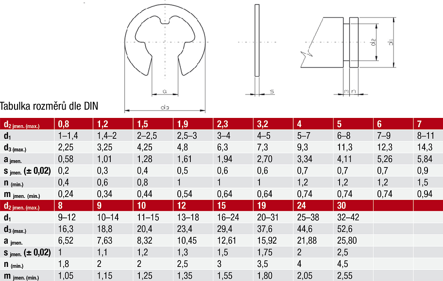 DIN 6799 - Pojistné podložky pro hřídele , Současná norma: DIN 6799 , Ekvivalentní normy: CSN 022929 ; PN 85112 ; UNI 7434