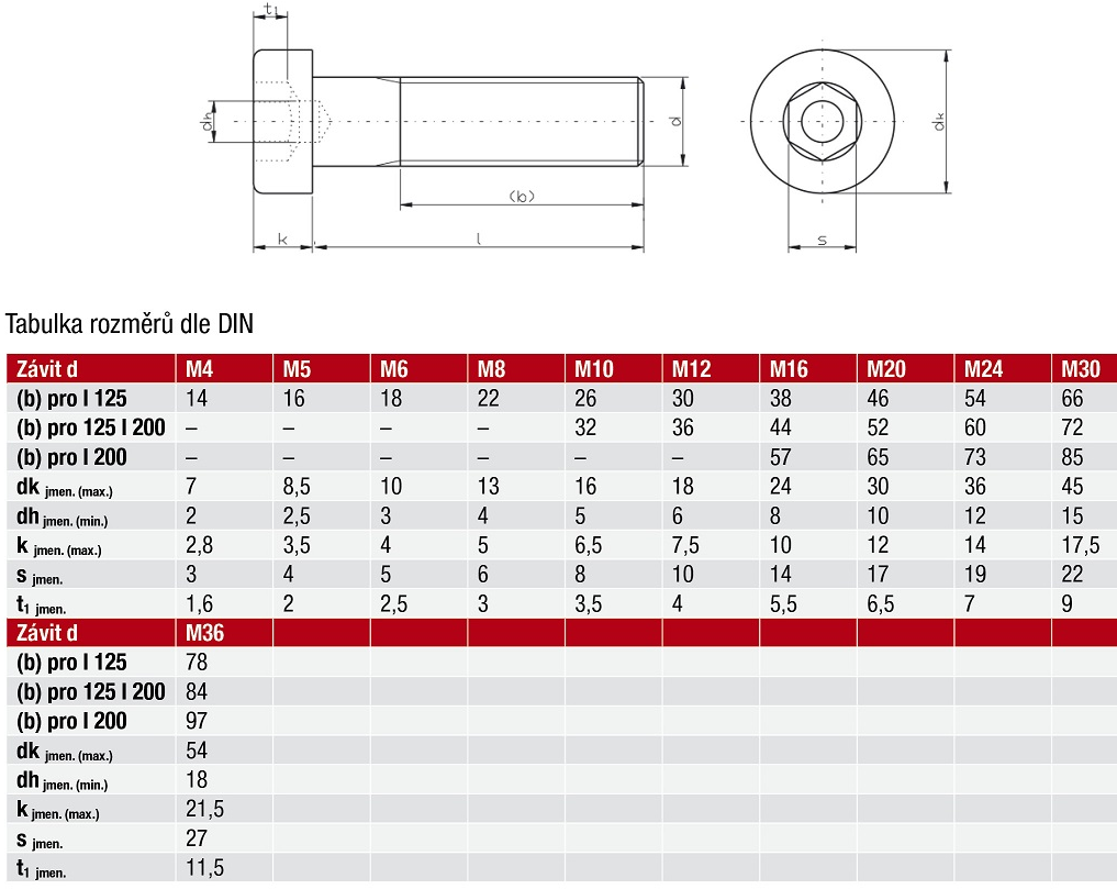 DIN 6912 inbus nízká hlava bez PÚ 10.9 M6x30