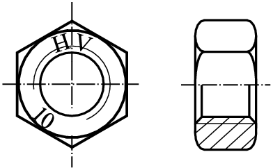 DIN 6915 - Šestihranné matice s velkým rozměrem klíče pro připojení vysokého napětí, Současná norma: DIN EN 14399-4, Ekvivalentní normy: ISO 4775; PN 82171; UNI 5713; EU 780