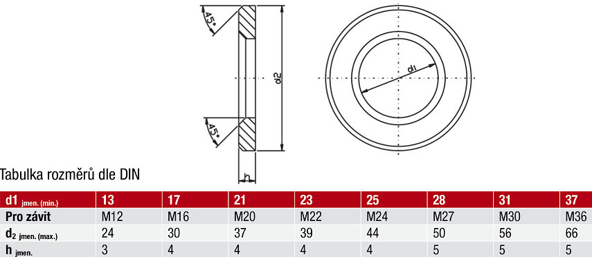DIN 6916 - Podložky kruhové pro vysokopevnostní spoje , Současná norma: DIN EN 14399-6 , Ekvivalentní normy: ISO 7416 ; PN 82039 ; UNI 5714 ; EU 784