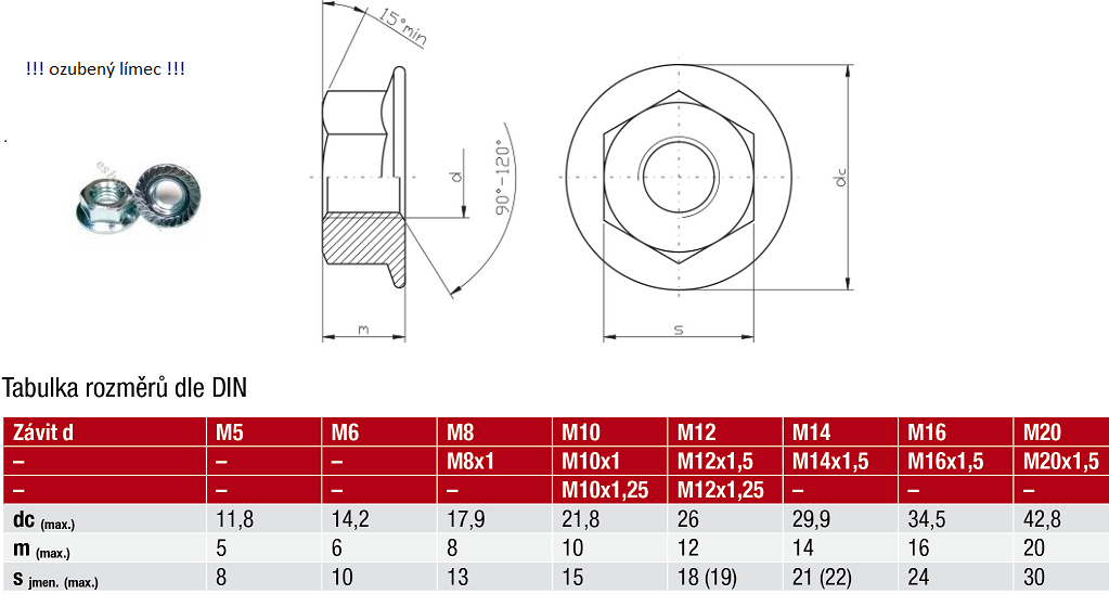 DIN 6923 matice šestihranná s límcem ozubeným DIN6923