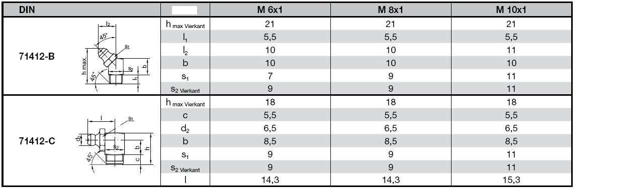 DIN 71412C Maznice kulová pravoúhlá (90°) ZnB M10x1,00
