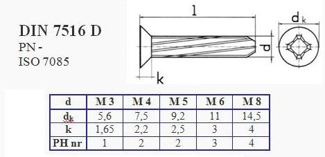 DIN 7516D šroub závitořezný zápustná hlava křížová drážka ZnB M5x16