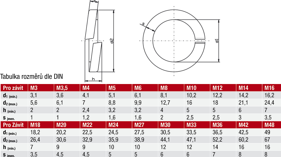 DIN 7980 - Pružná pojistná podložka pro šrouby s válcovou hlavou, inbus šrouby, Ekvivalentní : CSN 021740 ; PN 82008 ; UNI 4464A