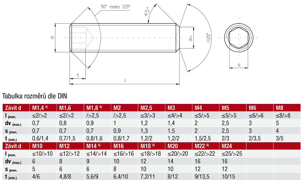 DIN 916 - Šrouby stavěcí s vnitřním šestihranem a kuželovým důlkem