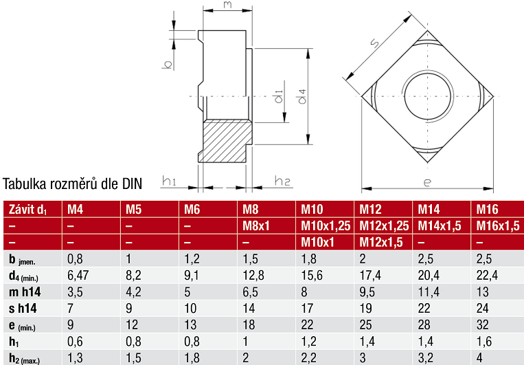 DIN 928 - Matice čtyřhranné pro přivařování, Současná norma: DIN 928 , Ekvivalentní normy: PN 82169