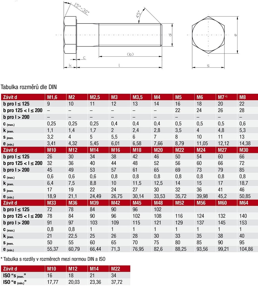 DIN 931 Šrouby se šestihrannou hlavou, Současná norma: DIN EN ISO 4014, Ekvivalentní normy: ISO 4014; CSN 021101; PN 82101; UNI 5737; EU 24014