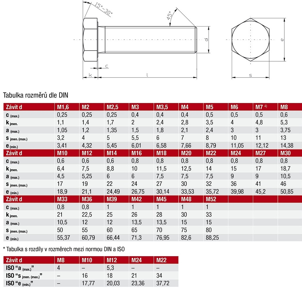 DIN 933 Šrouby se šestihrannou hlavou se závitem k hlavě - Současná norma: DIN EN 24017 - Ekvivalentní normy: ISO 4017; CSN 021103; PN 82105; UNI 5739; EU 24017, Bossard BN 56