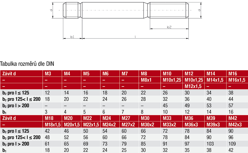 DIN 938 - Závrtné šrouby, délka záběru 1 x d, Současná norma: DIN 938, Ekvivalentní normy: CSN 021174; PN 82125; UNI 5911